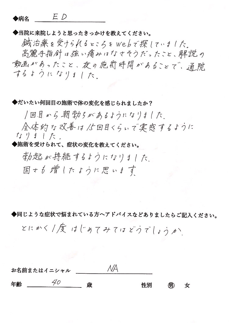 「初回施術の翌日に久しぶりに朝勃ちしました!」
