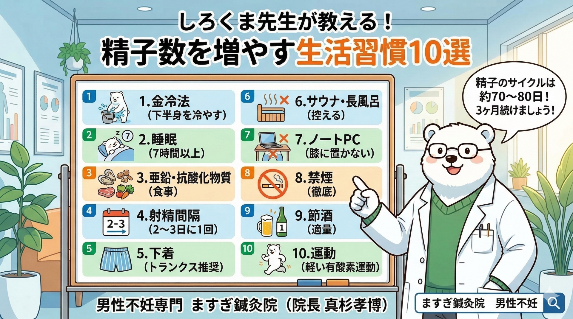 精子数を増やす生活習慣10選|男性不妊専門の鍼灸師が教える改善ガイド
